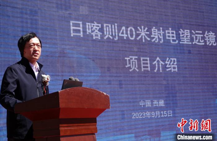 9月15日,中國科學(xué)院上海天文臺臺長沈志強在日喀則40米射電望遠鏡項目啟動會上,介紹該項目相關(guān)情況。中新網(wǎng)記者 孫自法 攝