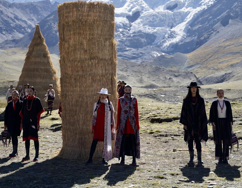 以雪域高原的藍(lán)天白云為幕,以廣袤無垠的高山草甸為毯,以金光燦燦的青稞裝飾為景……9月17日上午10時(shí)許, 來自上海金山的時(shí)裝品牌:沙涓“雪域·回響”喜馬拉雅大秀在西藏日喀則江孜縣乃欽康桑雪山下舉行,向現(xiàn)場(chǎng)觀眾呈現(xiàn)了一場(chǎng)西藏氆氌手工藝大秀,并通過視頻直播全球首發(fā),展現(xiàn)非遺復(fù)興。