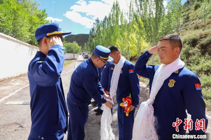 9月23日,參賽隊(duì)員載譽(yù)歸來,昌都市森林消防支隊(duì)熱烈歡迎參加比武指戰(zhàn)員載譽(yù)凱旋?!熬炊Y!”支隊(duì)指戰(zhàn)員用鮮花、哈達(dá)和熱烈的掌聲迎接凱旋歸來的勇士。