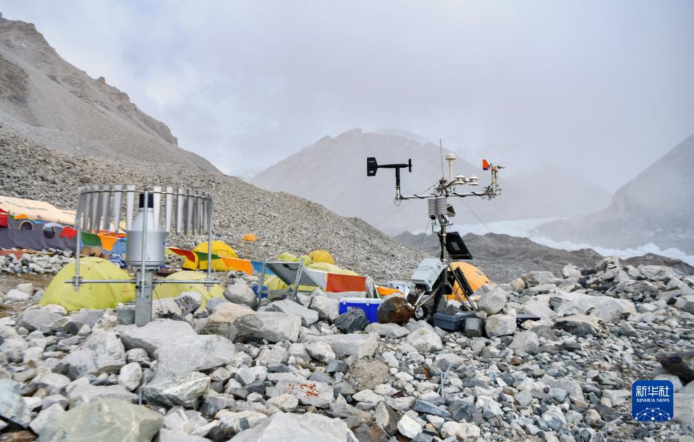 位于海拔5700米卓奧友峰前進(jìn)營(yíng)地的自動(dòng)氣象站(9月29日攝)。新華社記者 晉美多吉 攝
