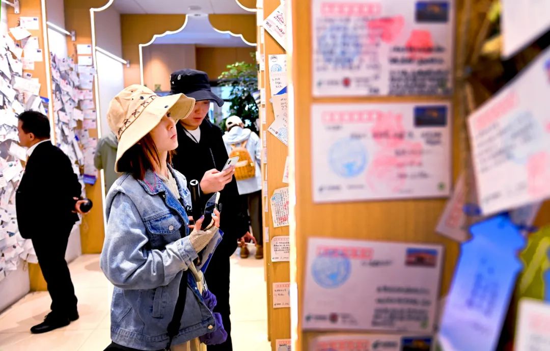 游客參觀“天上西藏”主題郵局明信片墻。人民政協(xié)報記者 田福良 攝