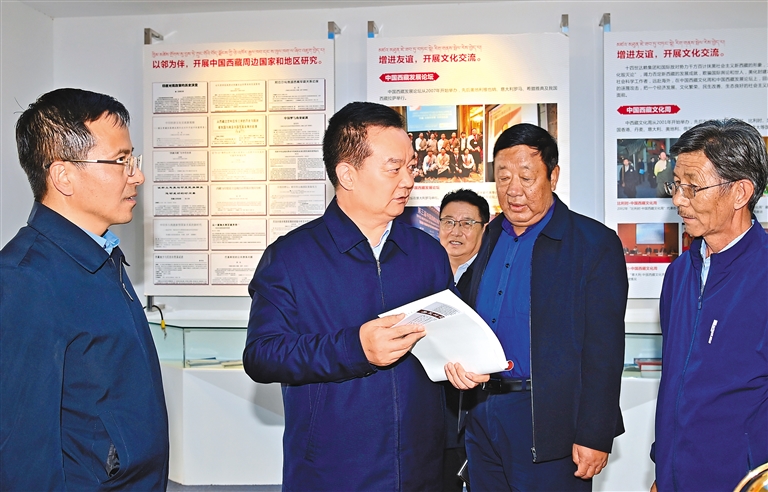 10月7日,西藏自治區(qū)黨委書記王君正前往自治區(qū)社科院、社科聯(lián)調(diào)研。這是王君正在考察全區(qū)哲學社會科學組織體系建設(shè)、學術(shù)研究、人才工作情況。記者 旦增西旦 攝