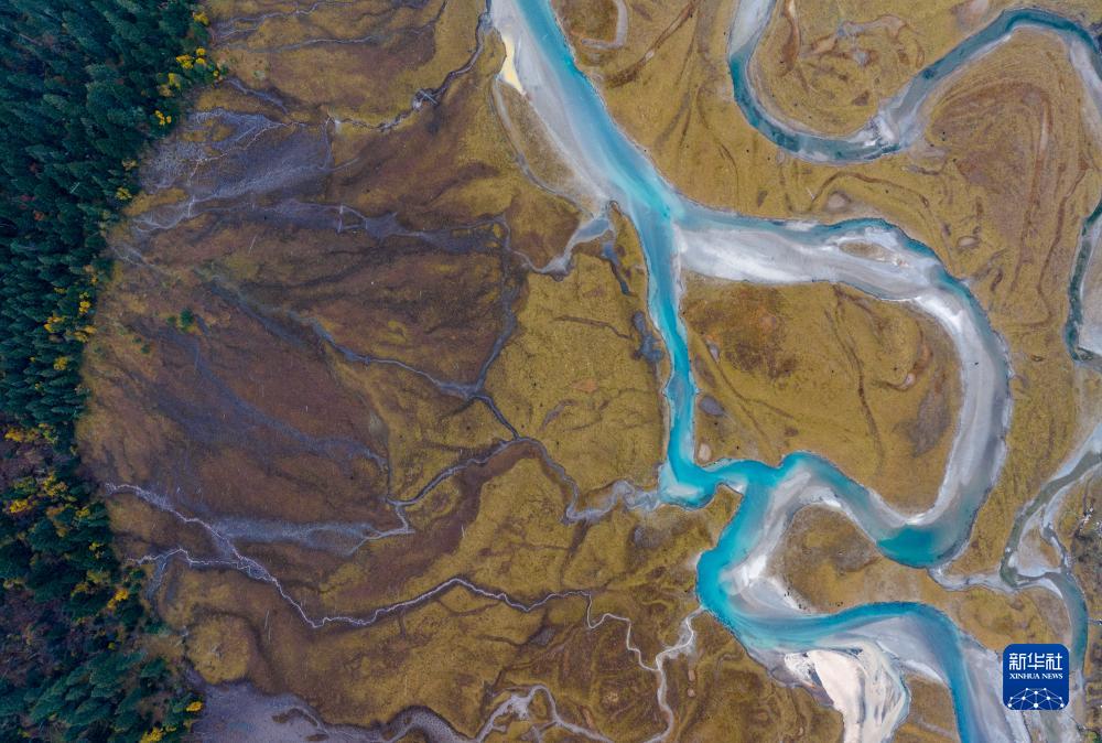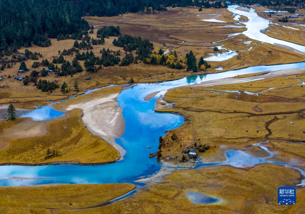 這是在林芝工布江達(dá)縣拍攝的景觀(無(wú)人機(jī)照片,10月28日攝)。新華社記者 姜帆 攝