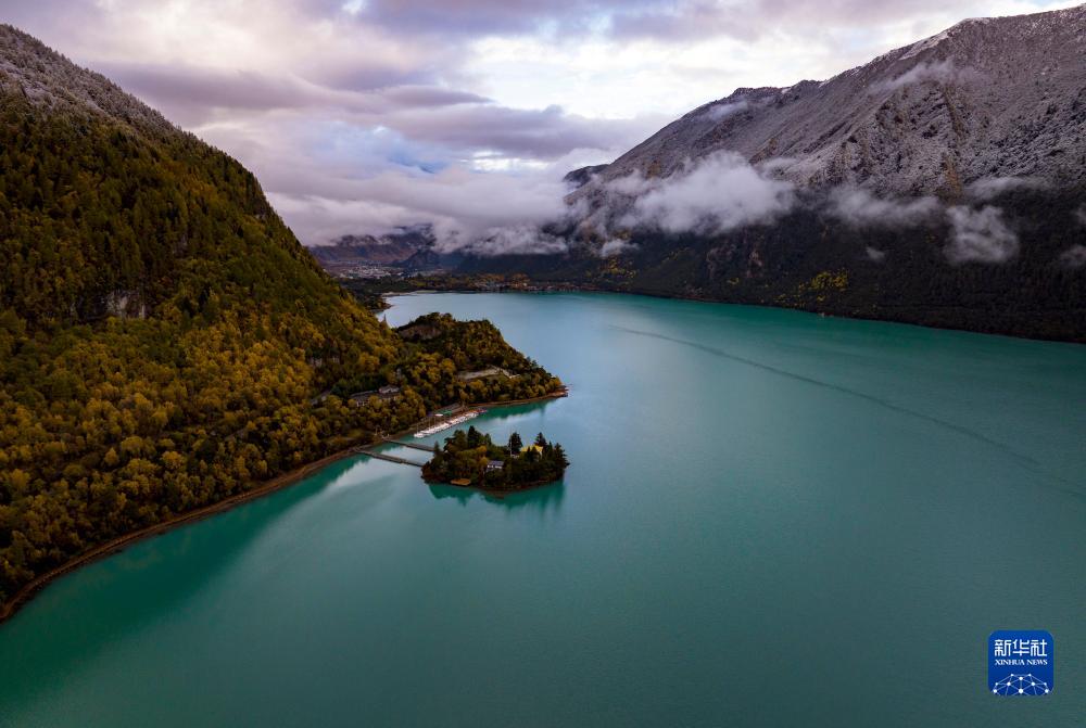 這是在林芝工布江達(dá)縣拍攝的巴松錯(cuò)(無(wú)人機(jī)照片,10月28日攝)。新華社記者 姜帆 攝
