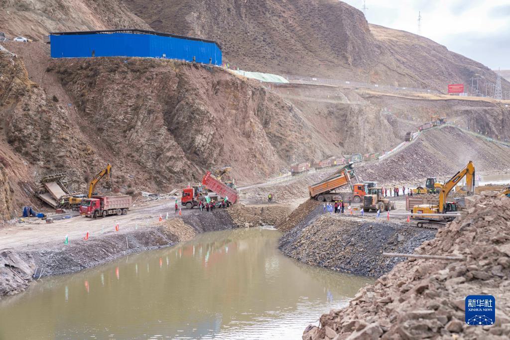 10月31日,施工人員在慶祝河道成功截流。新華社記者 孫非 攝