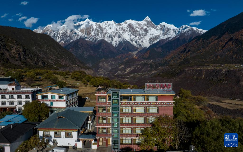 這是次仁頓珠和拉巴卓瑪開(kāi)辦的民宿(無(wú)人機(jī)照片,11月13日攝)。新華社記者 姜帆 攝