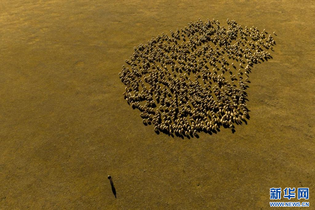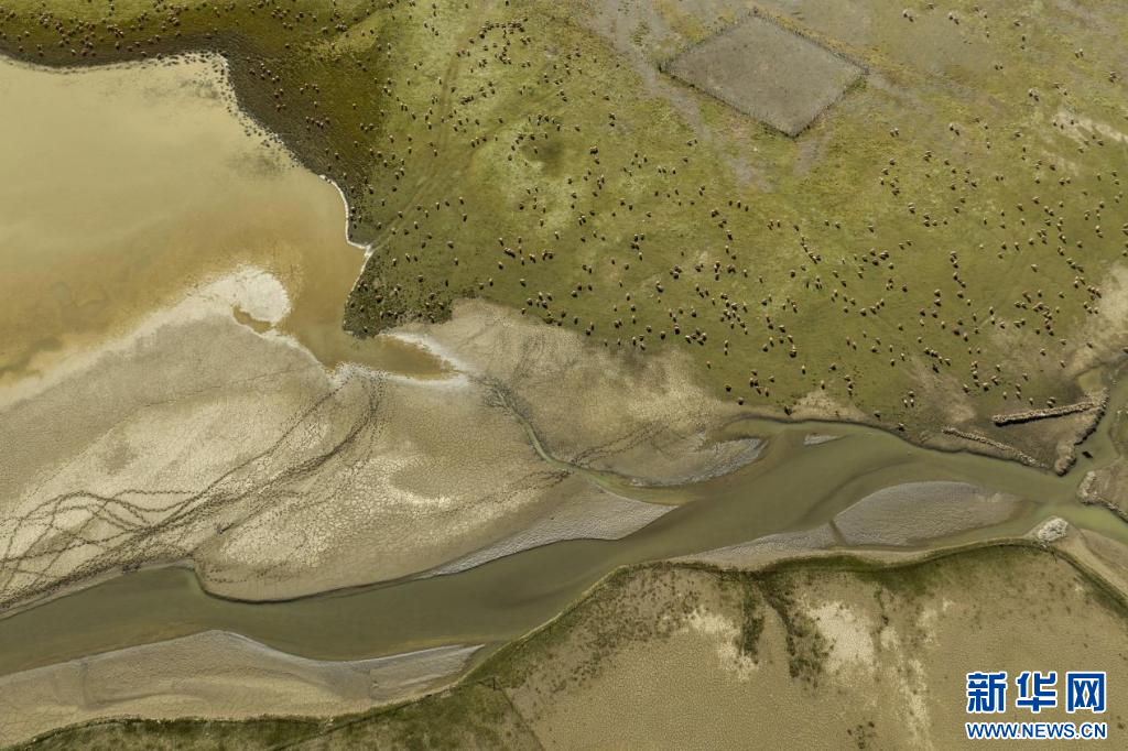 在西藏措美縣境內(nèi)拍攝的羊群(無人機照片)。新華網(wǎng) 旦增努布 攝