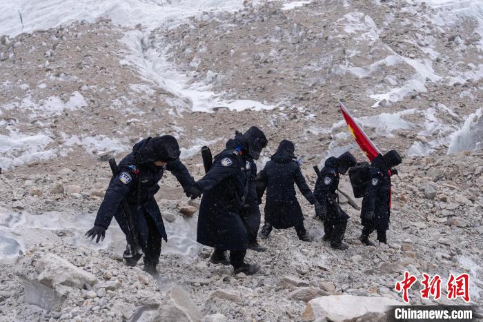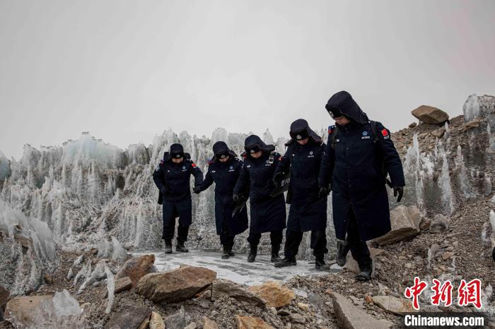 近日,西藏出入境邊防檢查總站普瑪江塘邊境派出所對轄區(qū)海拔5600米的崗布冰川(中不邊境)開展第332次巡邏。