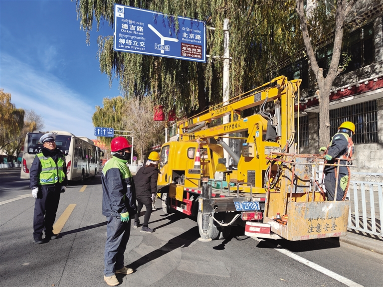 “結(jié)合拉薩市城鄉(xiāng)環(huán)境綜合大整治,我們?cè)陂_展道路交通整治行動(dòng)中,積極聯(lián)合園林部門對(duì)于道路兩旁樹枝遮擋交通信號(hào)燈、指示標(biāo)牌和電子監(jiān)控探頭等問題進(jìn)行全方位整改,此次整改點(diǎn)位155處,確保轄區(qū)道路交通安全暢通。在此,提醒廣大交通參與者,遇到修剪樹枝車輛,請(qǐng)減速慢行,確保交通安全?!崩_市公安局交警支隊(duì)城南大隊(duì)副大隊(duì)長(zhǎng)張浩表示。