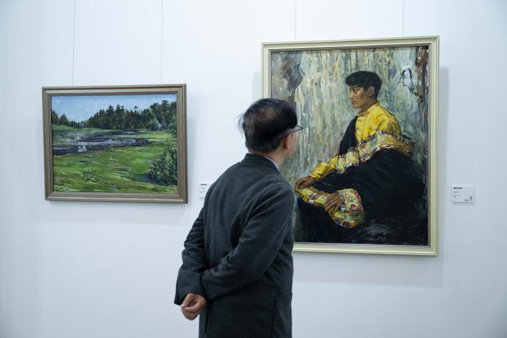 12月13日,市民在“西藏油畫(huà)澳門(mén)首展”上參觀。新華社記者 張金加 攝
