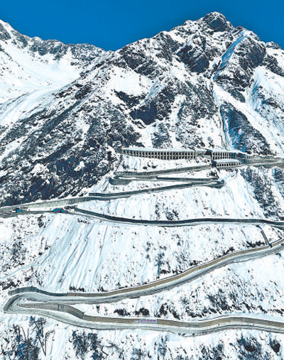 雪后的波墨公路沿嘎隆拉山蜿蜒。馬春林?jǐn)z(人民視覺)