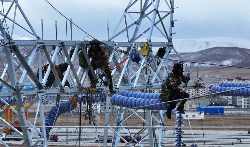 “還有10米,5米,導(dǎo)線到位!”12月12日,18時,隨著對講機(jī)傳出的N5號塔位導(dǎo)線到位,標(biāo)志著海拔4600米的西藏自治區(qū)那曲市色尼區(qū)國能100兆瓦風(fēng)電110千伏送出工程全部貫通。
