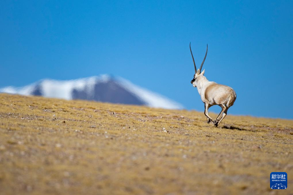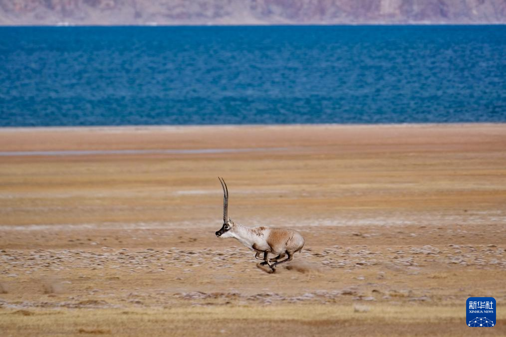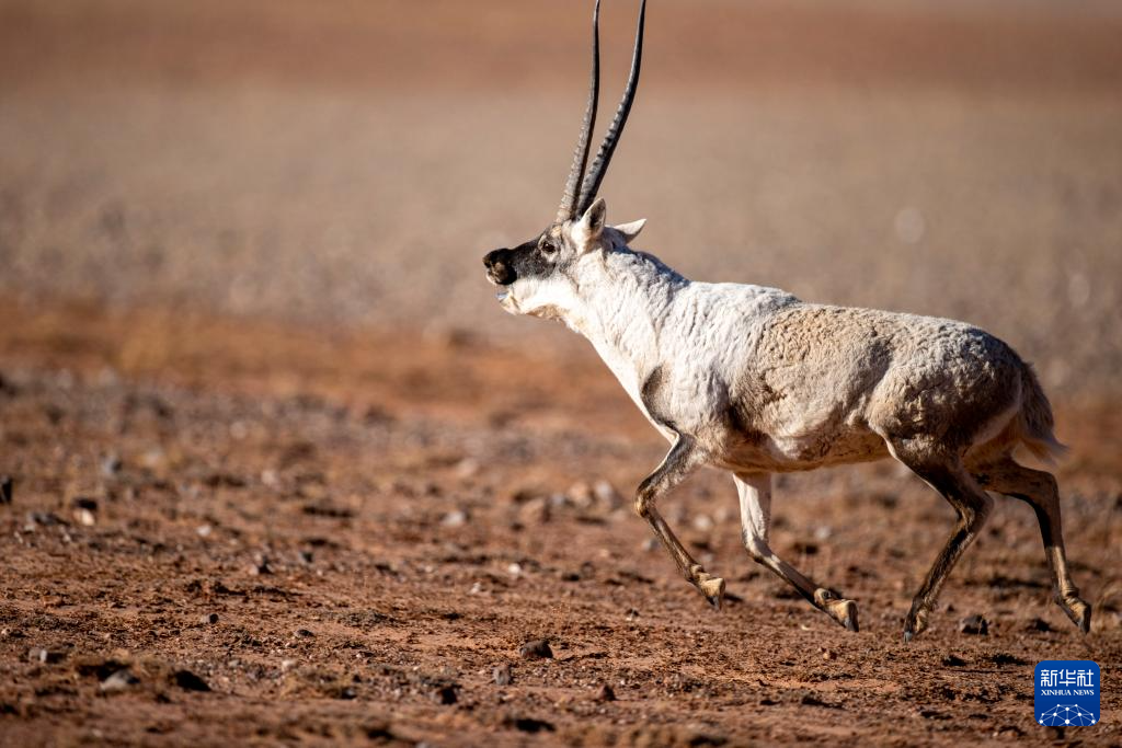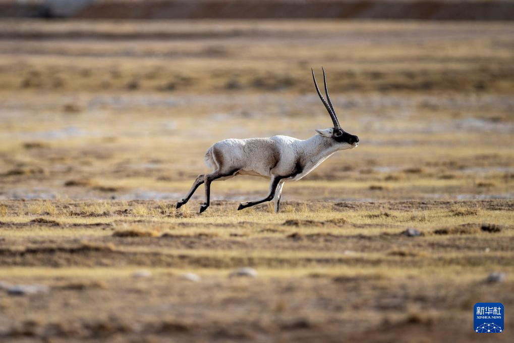 在羌塘國(guó)家級(jí)自然保護(hù)區(qū),一只雄性藏羚羊在奔跑(12月16日攝)。新華社發(fā)(旦增努布 攝)