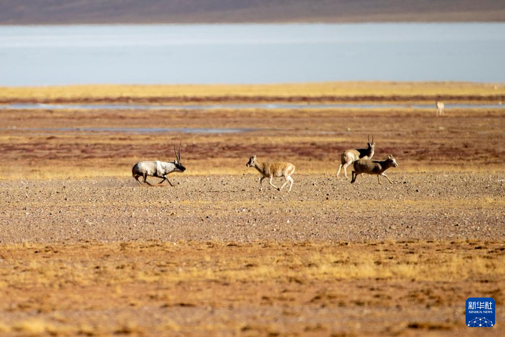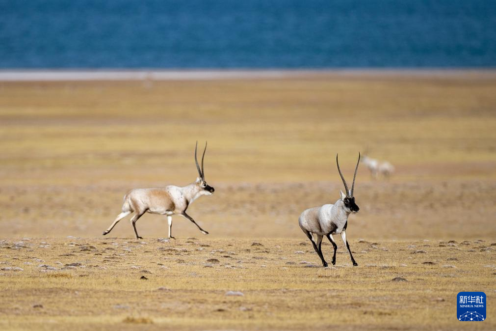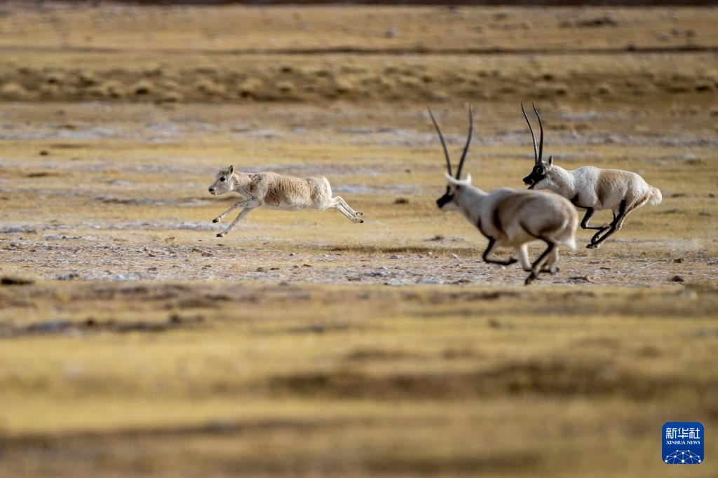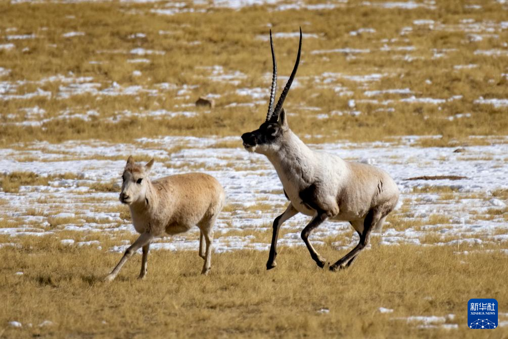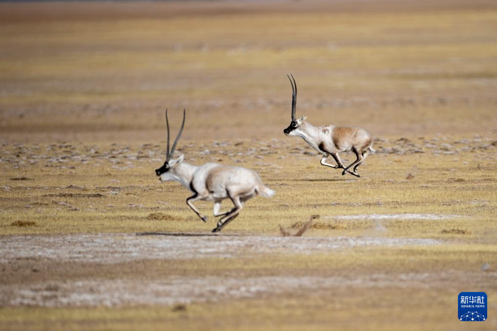 在羌塘國(guó)家級(jí)自然保護(hù)區(qū),一只雄性藏羚羊在奔向雌性(12月16日攝)。新華社記者 姜帆 攝