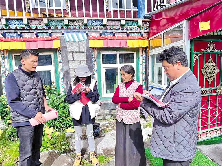 2023年9月26日,自治區(qū)人大代表歐珠(左一)在林芝市波密縣扎木鎮(zhèn)巴瓊村開展防止返貧監(jiān)測工作。