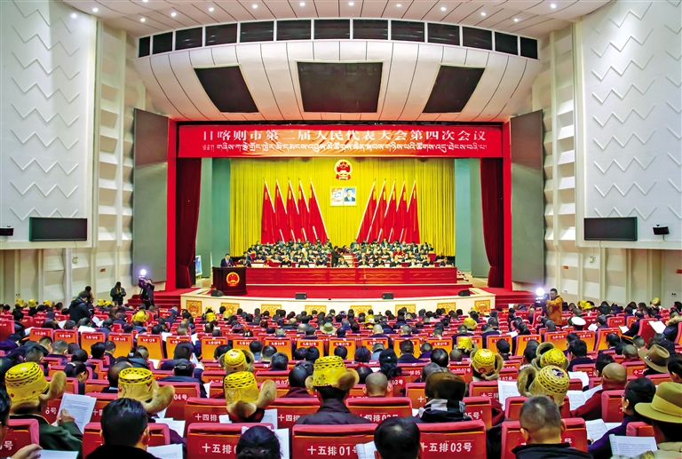 圖為日喀則市第二屆人民代表大會(huì)第四次會(huì)議開(kāi)幕現(xiàn)場(chǎng)。