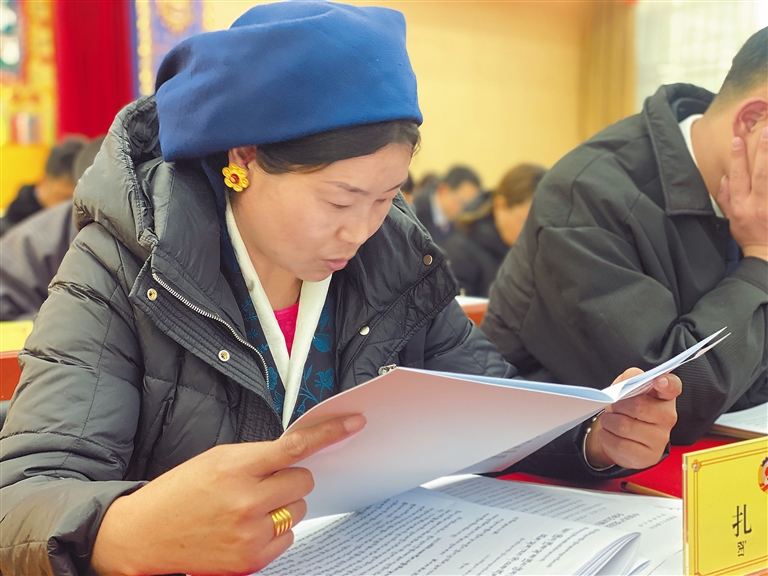 圖為基層委員認(rèn)真聆聽政協(xié)拉薩市委員會工作報告。
