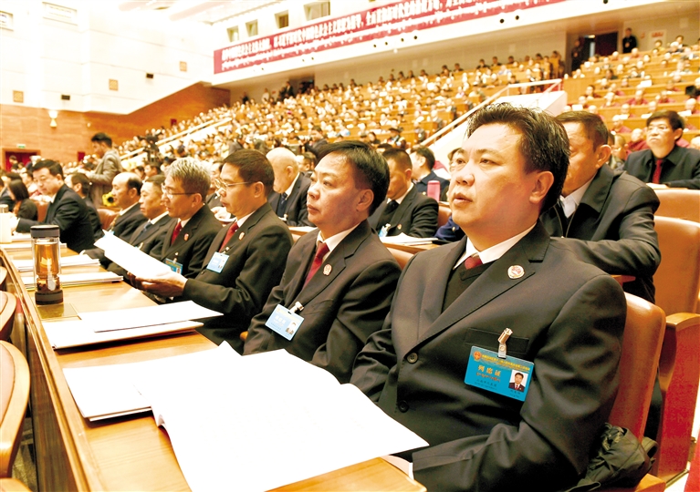 圖為列席人員認(rèn)真聆聽政府工作報(bào)告。記者 旦增蘭澤 攝
