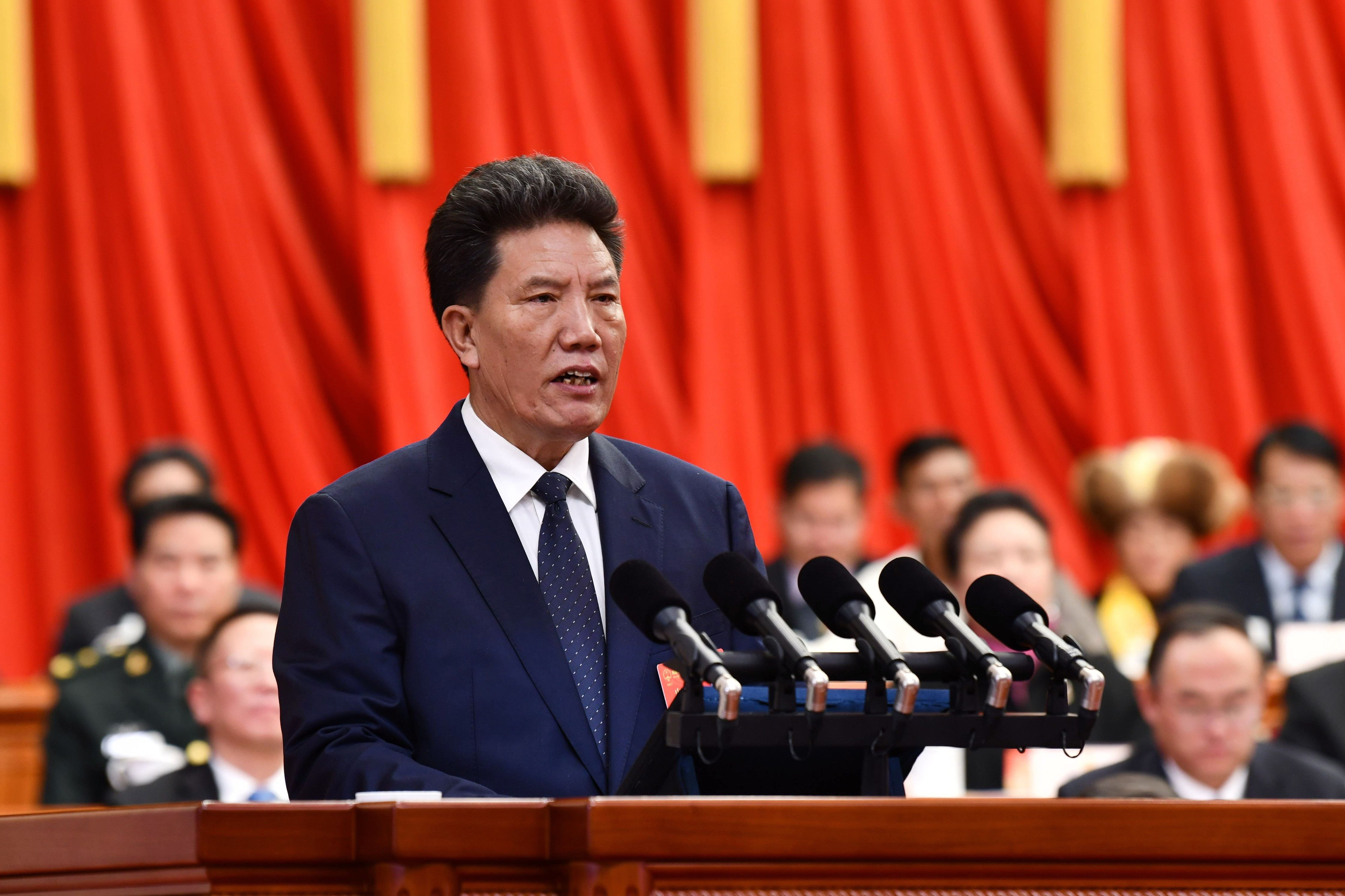 王君正嚴金海陳永奇劉江等在主席臺就座 洛桑江村作自治區(qū)人大常委會工作報告