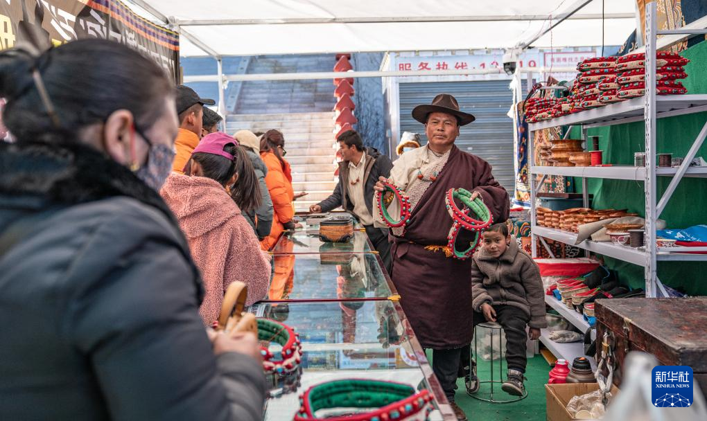 1月9日,商戶在推銷“巴珠”(藏族頭飾)。新華社發(fā)(丁增尼達 攝)