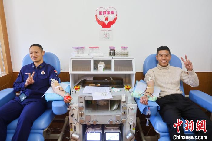 圖為西藏林芝森林消防進行獻血。王澤棟 攝