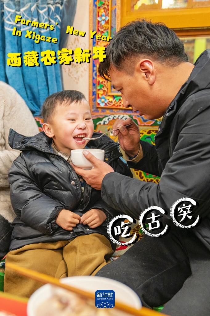 藏歷十一月二十九是農(nóng)家新年的“古突”夜,按習(xí)俗,家家戶戶都要吃“古突”。藏語中,古突的“古”意為九,“突”為面食(1月10日攝)。