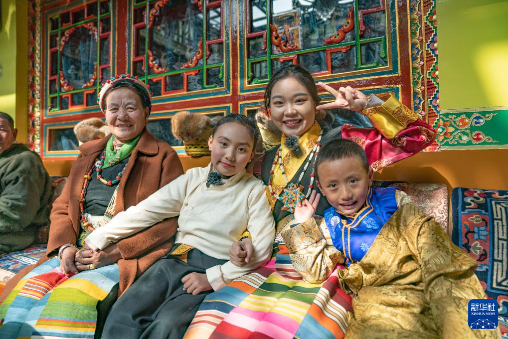 后來我們又去莫拉家拍攝了團(tuán)圓飯、換新藏裝等場景。拍攝時(shí),我需要穿藏裝和巴桑莫拉的女兒進(jìn)行互動,而當(dāng)天日喀則的氣溫已經(jīng)到了零下,她發(fā)現(xiàn)我的雙手冰涼后,全程都用自己的手捂著我的手,想讓我暖和一點(diǎn)。拍攝結(jié)束以后,小朋友們也圍在我身邊抱著我,想用自己的方式給我傳遞一點(diǎn)溫暖。