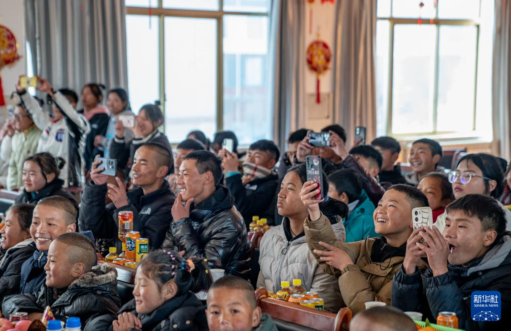 福利院小朋友們在觀看聯(lián)歡會表演。新華社記者 丁增尼達(dá) 攝