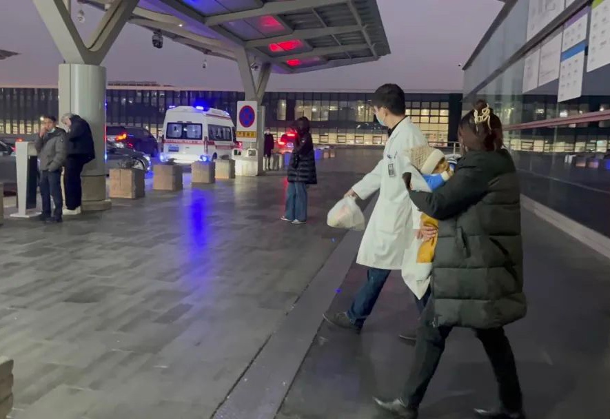 1月18日晚,浙大二院醫(yī)生接上德勒和他的媽媽,救護車也等候在機場外。新華社發(fā)(金宇婷攝)