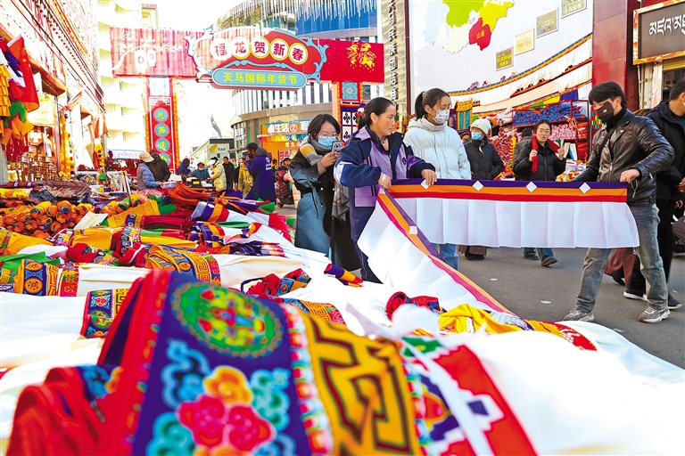 春節(jié)、藏歷新年臨近,年貨市場開始熱鬧起來。山南市澤當(dāng)鎮(zhèn)市民紛紛走進(jìn)大型商超和農(nóng)貿(mào)市場選購節(jié)日貨品,商戶備足貨源,推出讓利促銷活動,滿足各族群眾消費需求,年貨市場呈現(xiàn)出購銷兩旺的良好態(tài)勢。
