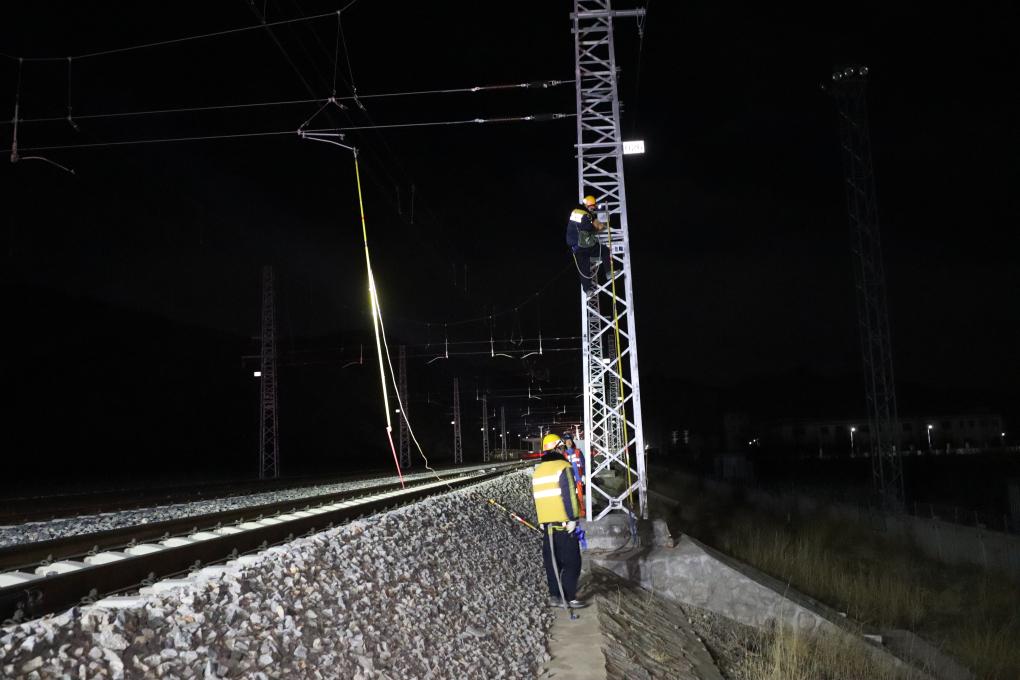 接觸網(wǎng)源源不斷地為電力火車提供電力,就像電氣化鐵路的“血管”?!拔覀兙褪歉咴姎饣F路的醫(yī)生,每天夜里,為它的‘血管’做一場細(xì)致的手術(shù),保證接觸網(wǎng)安全暢通?!崩罘e王說,細(xì)致的夜間作業(yè)確保了拉林鐵路在春運(yùn)期間能夠安全、高效地運(yùn)行。