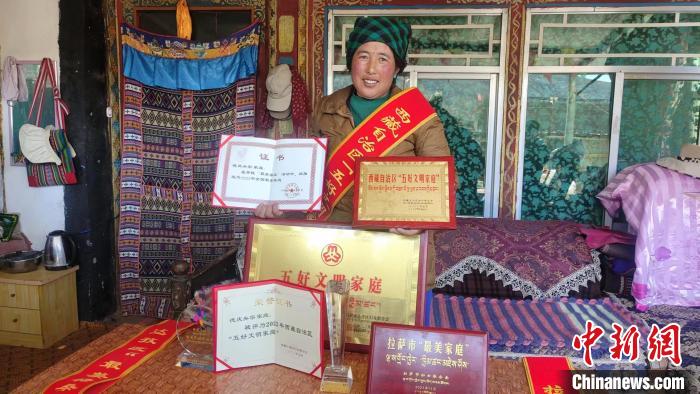 全國最美家庭、西藏自治區(qū)“五好文明家庭”、西藏自治區(qū)“最美民族團結(jié)家庭”、拉薩市“最美家庭”……當(dāng)記者走進(jìn)德慶央宗家的客廳時,首先映入眼簾的便是擺放在藏式柜子上的諸多榮譽證書及獎杯,這是夫妻二人在平凡的生活中,遵紀(jì)守法、孝敬老人、樂于助人等贏得的肯定與榮譽。