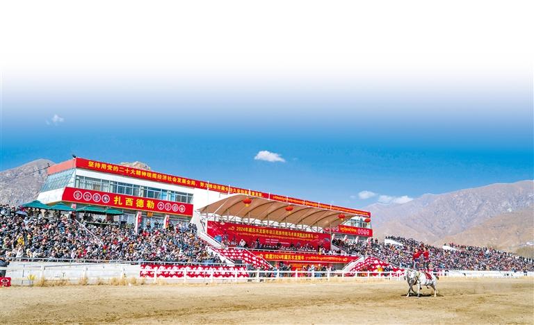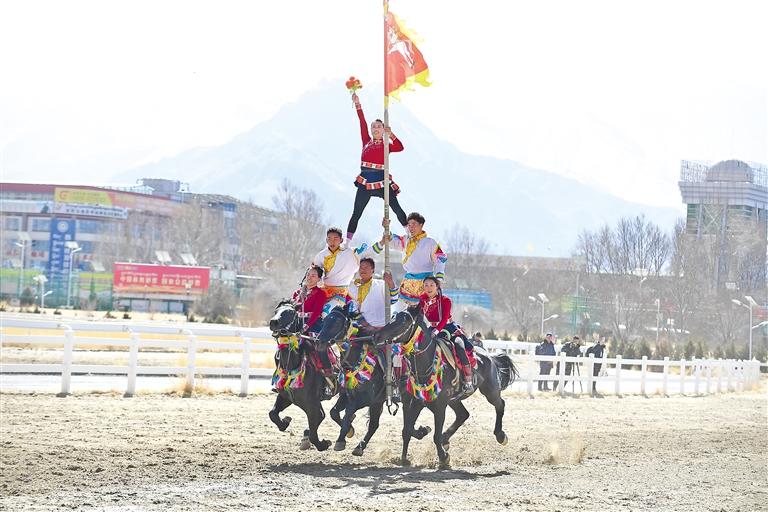 2月12日藏歷新年初三,主題為“體育大拜年,健康迎新春”的民族傳統(tǒng)馬術(shù)表演暨民族賽馬活動(dòng)在拉薩賽馬場(chǎng)舉行。