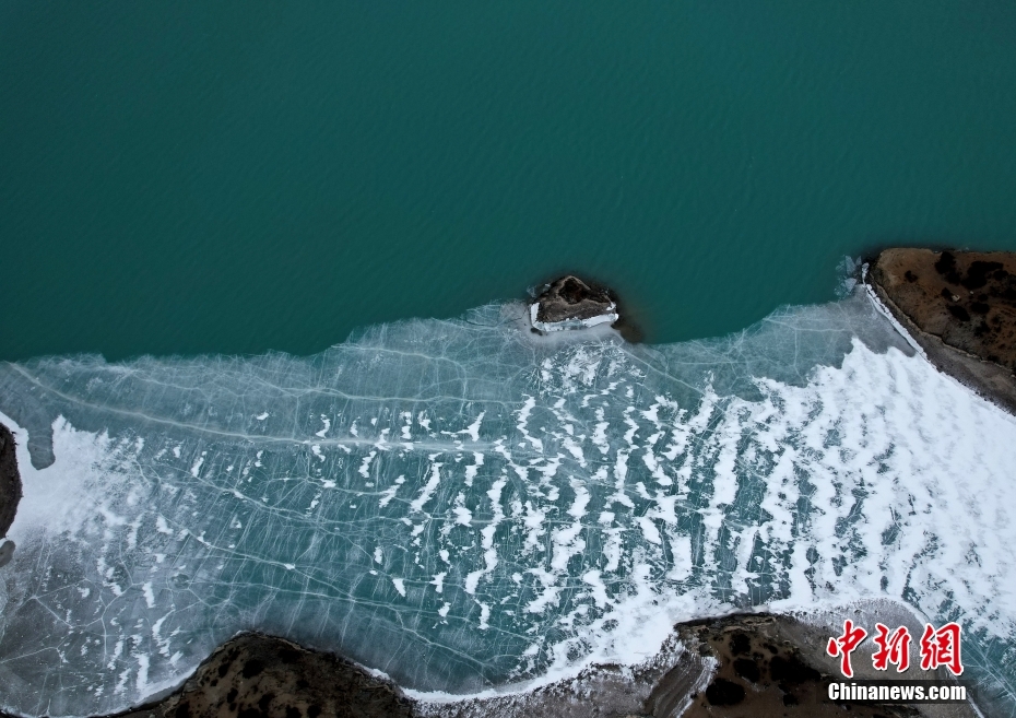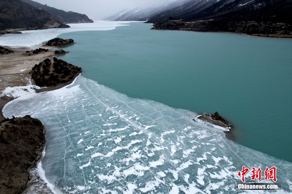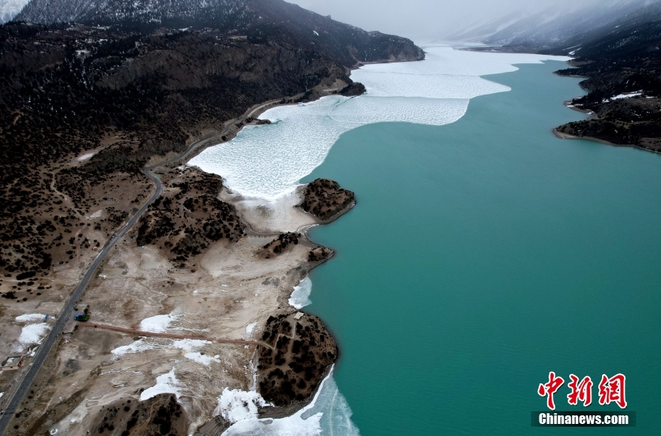 2月21日,西藏昌都市八宿縣,然烏湖半冰半水的湖面如畫(huà)一般,美不勝收。(無(wú)人機(jī)照片)中新社記者 李林 攝