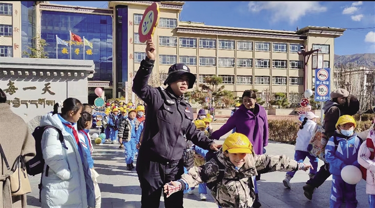 站在學校門口,等待孩子的家長央金感觸頗深,她告訴記者,每次開學前、開學時、開學后,都能看到民警們忙碌的身影。為學校家長提供幫助,為學生消除安全隱患,營造了安全、和諧、文明的校園環(huán)境,十分感謝他們。“今天報到啦,我們看到警察叔叔和阿姨就覺得很安心、很開心。”實驗小學3年級10班學生白瑪娜薩說。
