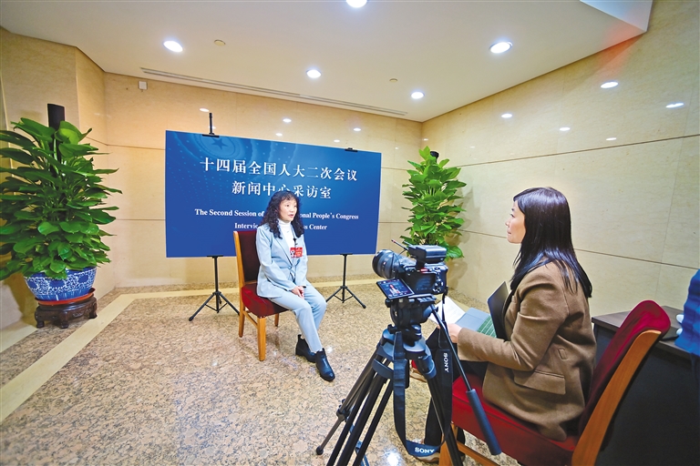 圖為全國(guó)人大代表白瑪措接受中央媒體采訪(fǎng)。記者 旦增西旦 攝