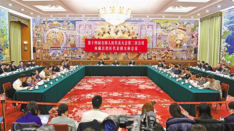 3月6日,西藏代表團舉行全體會議,傳達學(xué)習(xí)習(xí)近平總書記在參加十四屆全國人大二次會議江蘇代表團審議時的重要講話精神,繼續(xù)審議政府工作報告,審查計劃報告和草案、預(yù)算報告和草案。