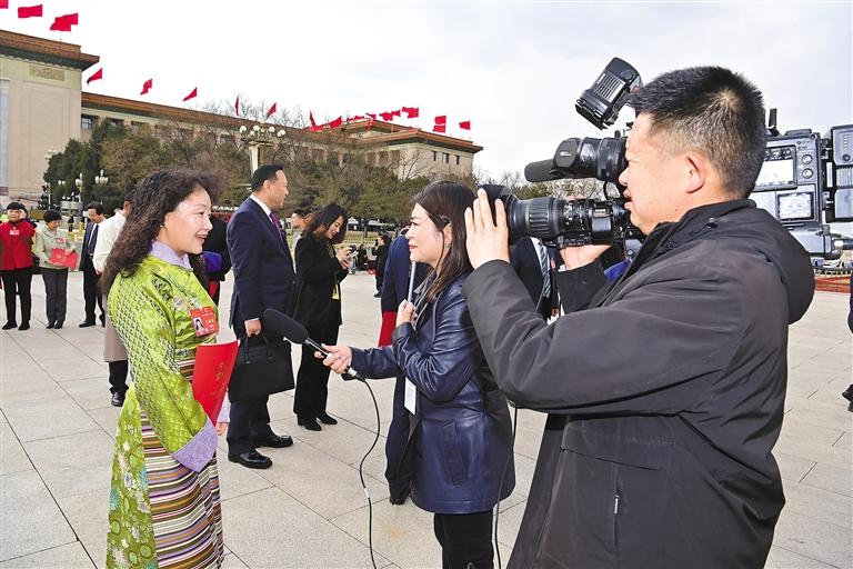 圖西藏全國人大代表白瑪措在接受區(qū)內(nèi)媒體采訪。