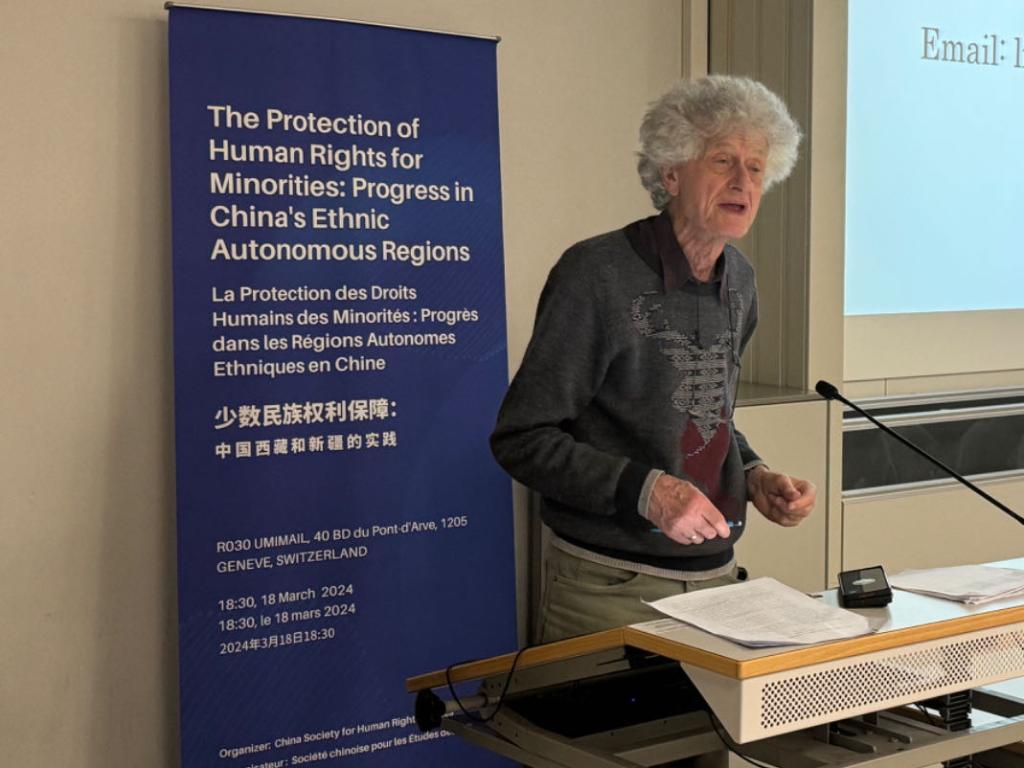 3月18日,由中國人權(quán)研究會(huì)主辦的“少數(shù)民族權(quán)利保障:中國西藏和新疆實(shí)踐”主題講座在瑞士日內(nèi)瓦舉行。圖為比利時(shí)知名藏學(xué)家安德烈·拉克魯瓦在講座上發(fā)言。新華社記者石松攝