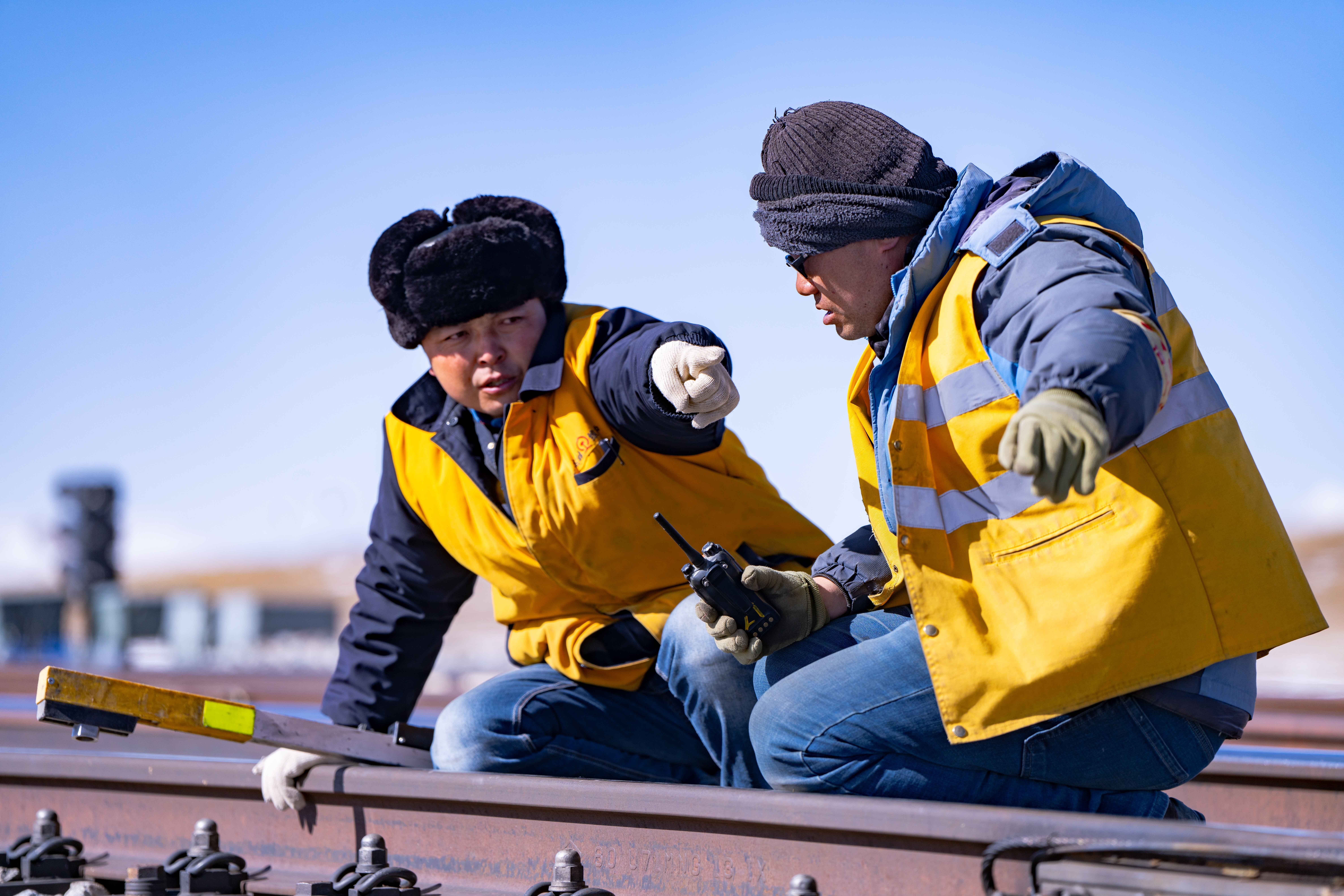 施工時間有限,工人們的速度不斷加快。馬祎俊指揮安排好幾名鐵路工人,大家各司其職,迅速開始動手維護鐵路鋼軌。天氣讓鋼軌比冰塊更加寒冷。隔著佩戴的線手套,依舊能感受到風(fēng)和鐵軌上的寒冷鉆進手套里,沁到骨頭里。
