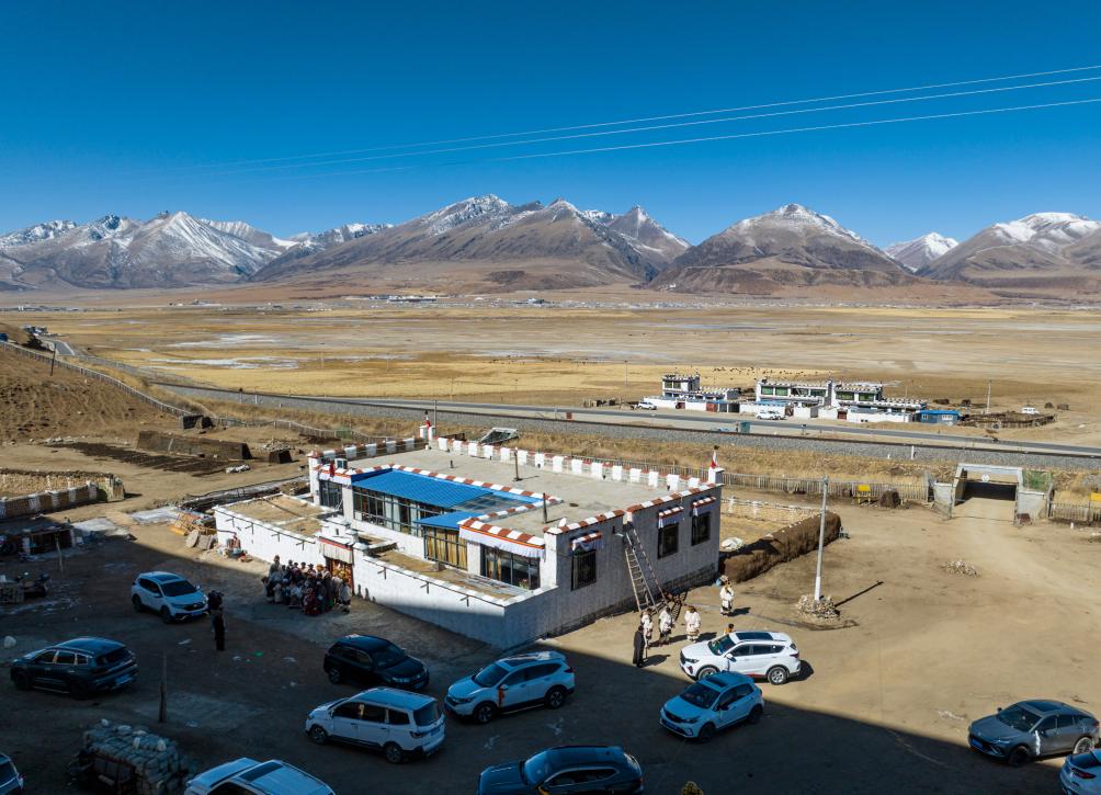 這是斯曲旺姆在西藏拉薩市當(dāng)雄縣公塘鄉(xiāng)甲根村的家(2月10日攝,無人機(jī)照片)。新華社記者 孫非 攝