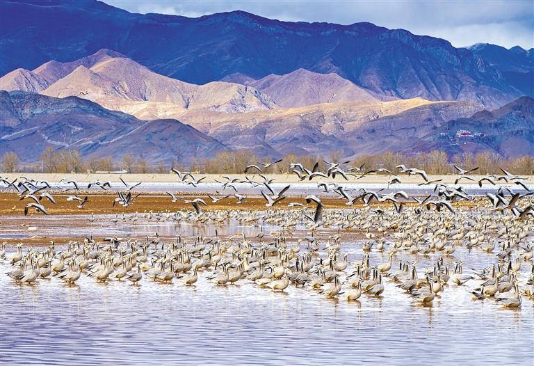 拉薩河谷越冬棲息的斑頭雁。