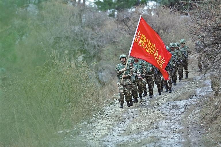 邊防官兵在山間穿行。
