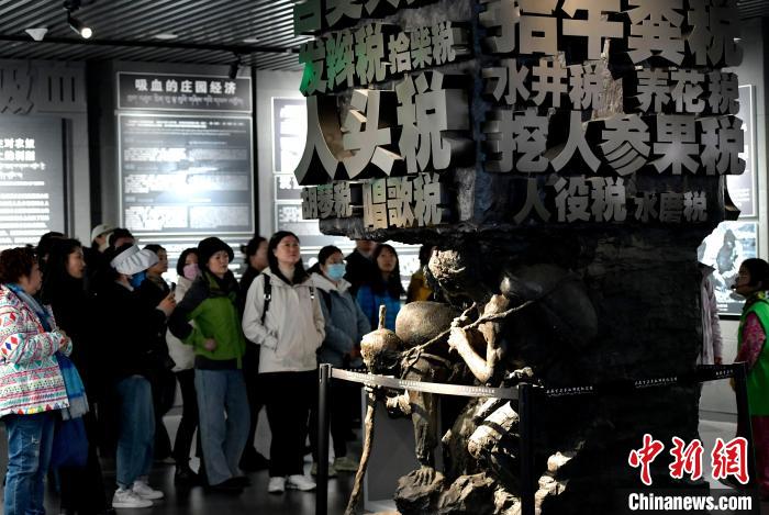 圖為觀眾在西藏百萬農(nóng)奴解放紀念館參觀。李林 攝