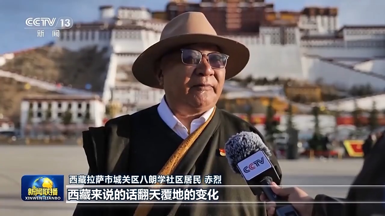 西藏拉薩市城關區(qū)八朗學社區(qū)居民 赤烈:西藏來說的話翻天覆地的變化,國家有那么好的政策,我們現(xiàn)在群眾都很滿意的。