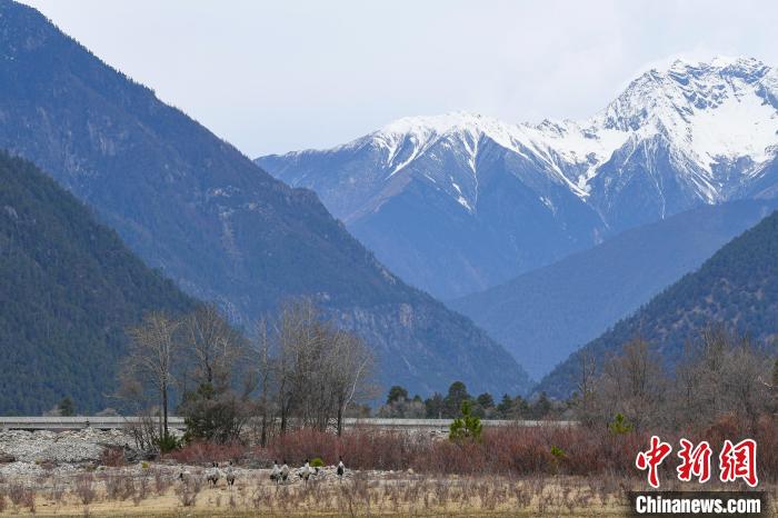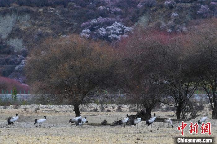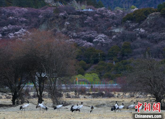 3月30日,在西藏林芝市巴宜區(qū)更章門巴民族鄉(xiāng)境內(nèi),黑頸鶴在村莊里、盛開的桃花前、雪山下翩翩起舞,形成一幅絕美的自然畫卷。黑頸鶴,被譽為“鳥類大熊貓”,是國家一級保護野生動物,也是世界上唯一在高原地區(qū)生長和繁殖的鶴類。近年來,西藏不斷加大黑頸鶴生存環(huán)境保護力度。據(jù)2022年冬季越冬黑頸鶴種群數(shù)量調(diào)查顯示,在西藏越冬的黑頸鶴種群數(shù)量達11175只,種群數(shù)量持續(xù)增長,并在西藏全區(qū)均有分布,其瀕危等級也從“易?!苯禐椤敖!?。在林芝,黑頸鶴在桃花與雪山間自由翱翔,展現(xiàn)了人與自然和諧共處的美好場景。