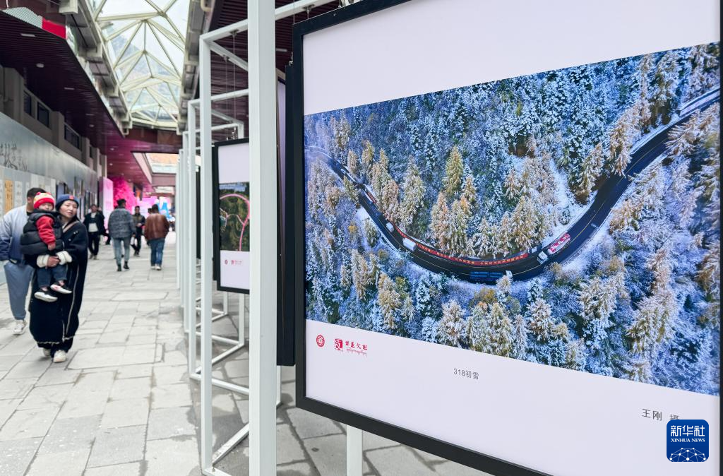 3月31日,觀眾在林芝市第二十一屆桃花旅游文化節(jié)上參觀攝影作品展。新華社記者 丁汀 攝