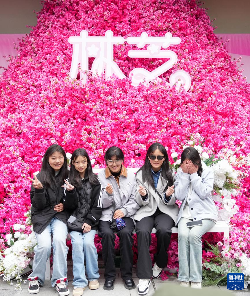 3月31日,游客在林芝市第二十一屆桃花旅游文化節(jié)活動現(xiàn)場拍照留念。新華社記者 丁汀 攝