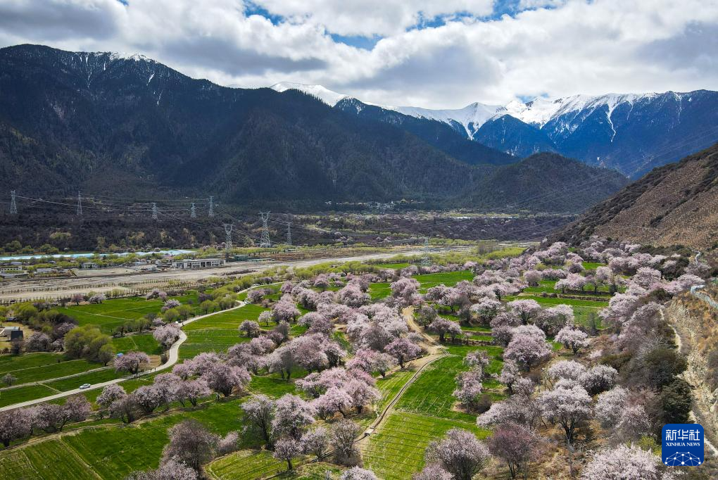 林芝市巴宜區(qū)朵當(dāng)村盛開的桃花(3月30日攝,無人機照片)。新華社記者 丁增尼達 攝