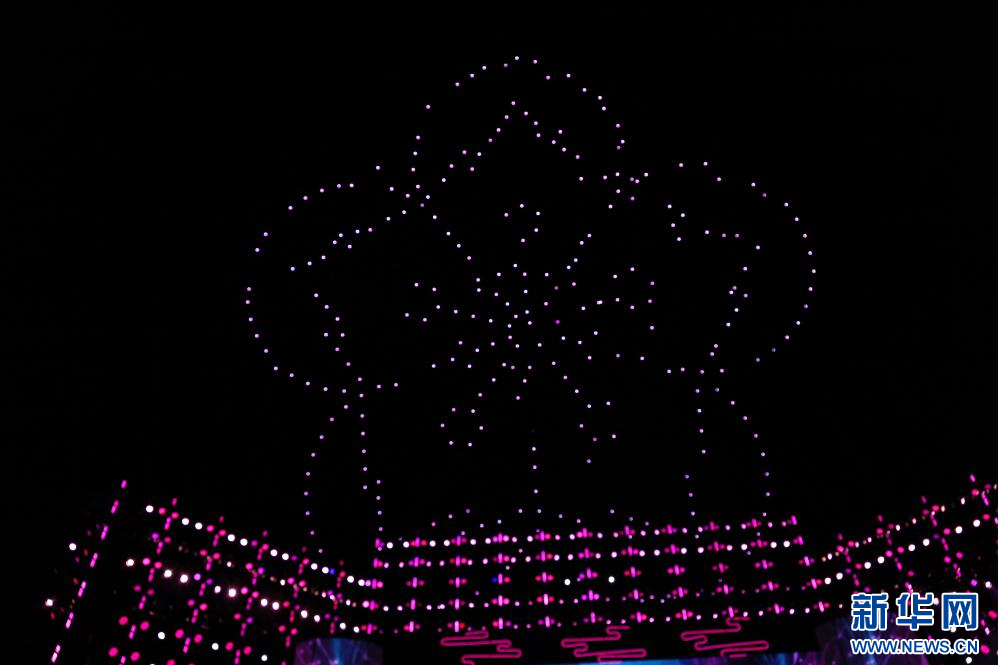 3月31日,開幕式上的無人機(jī)表演。新華網(wǎng)發(fā) 李騰 攝